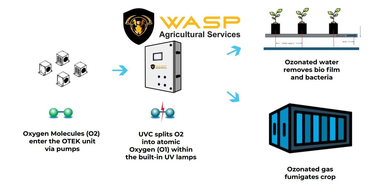 The Wasp ozone treatment utilizes 185nm ultraviolet lamps to form a small amount of ozone. Ozone is fed into the water or air providing high levels of disinfection. Ozone is a colorless gas that has an odor similar to the smell of the air after a major thunder storm. The oxygen we breathe (O2) is made up of two oxygen atoms that naturally bind to each other and are very stable. Ozone gas (O3) has three oxygen atoms which consist of a stable pair of (O2) atoms and a third very unstable atom. It is this third unstable atom that gives ozone its exceptional power. Ozone is a fast-acting powerful germicidal agent, far more powerful than peroxide, chlorine, chloramines, or chlorine dioxide, and capable of rapidly neutralizing bacteria, viruses, fungi, mildew, and other organisms, from water all without toxic compounds or leaving harmful residues. Ozone is also an extremely powerful oxidizer, far more efficient than many chemical processes currently used. Ozone will precipitate out of solution many minerals, heavy metals, and organic or chemical compounds with a short reaction time.